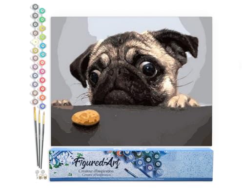 Figured'Art Peinture par Numéro Adulte Chien Carlin Gourmand - Activité Manuelle Kit de Loisir Créatif DIY Numéro d'Art Complet - 40x50cm sans châssis en bois