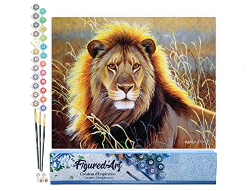 Figured'Art Peinture par Numéro Adulte Lion dans la savane - Activité Manuelle Kit de Loisir Créatif DIY Numéro d'Art Complet - 40x50cm sans châssis en bois