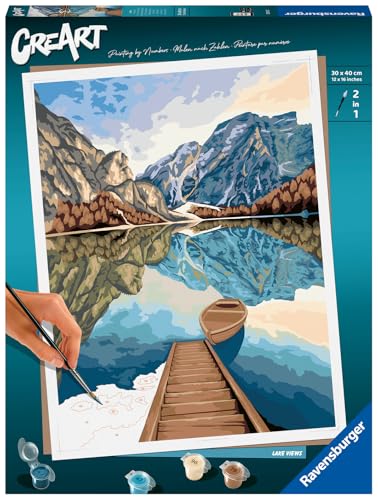 Ravensburger – CreArt Grand Format 30x40 cm – Lake Views – Loisir créatif – Peinture par numéros – Adulte - Activité détente et créative – Dès 12 Ans – 23612 – Version française