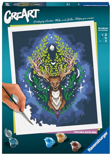 Ravensburger – CreArt 24x30 cm– Mystic Deer – Loisir créatif – Peinture par numéros – Adulte – Activité détente et créative – Dès 12 Ans – 23640 – Version française