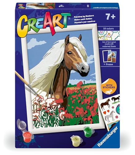 Ravensburger - CreArt Série E Classic : cheval romantique, kit de peinture par numéros, contient une planche pré-imprimée, un pinceau, des couleurs et des accessoires, jeu créatif pour enfants de 7