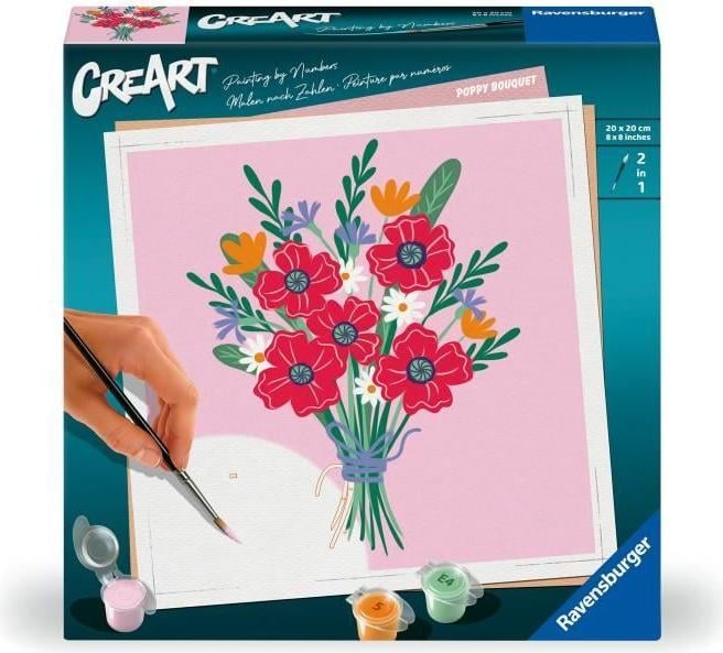 CreArt 20x20 cm Poppy bouquet, Loisir créatif, Adulte, Peinture par numéros, 25519, Ravensburger