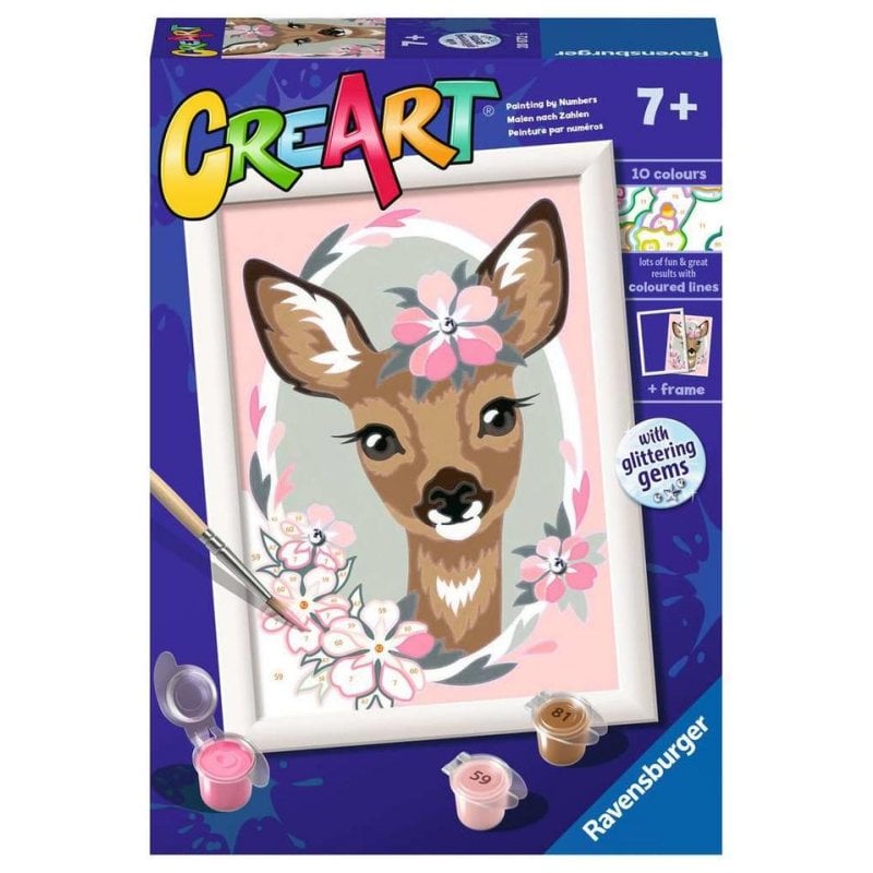 Ravensburger CreArt 20290 - Motif cerf Mignon - Peinture par numéros pour Enfants à partir de 7 Ans - Kit de Peinture avec Cadre, pinceaux et peintures acryliques - Cadeau pour Filles et garçons