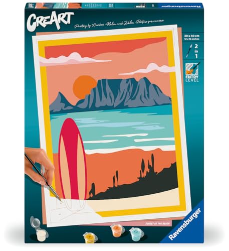 Ravensburger – CreArt 30x40 cm – Adulte – Peinture par numéros – Sunset at The Beach – Activité détente et créative – 23898