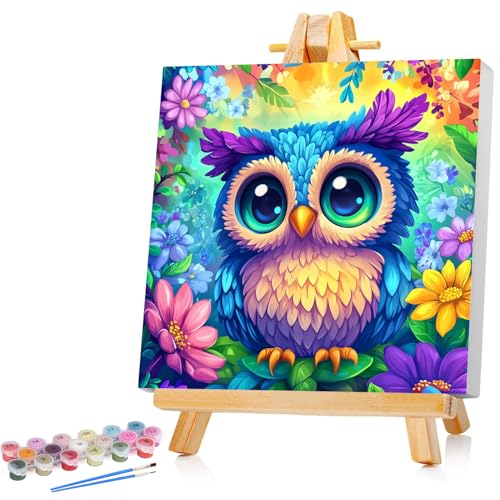 Peinture par numéros pour enfants 5-9 ans - Huile sur bois - Cadre en forme de chouette - 20 x 20 cm
