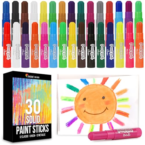Zenacolor Lot de 30 bâtons de peinture pour enfants - Fournitures d'art pour enfants - Bâton de peinture sans désordre - Couleur unie