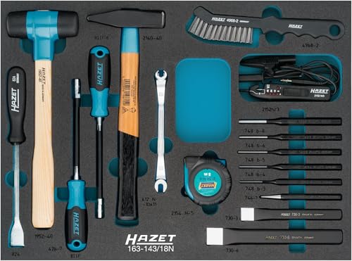 HAZET Jeu universel 163-143/18N, 18 pièces, y compris burin, tournevis, grattoir, marteau, mètre ruban, jeu électronique et brosse pour étrier de frein'.