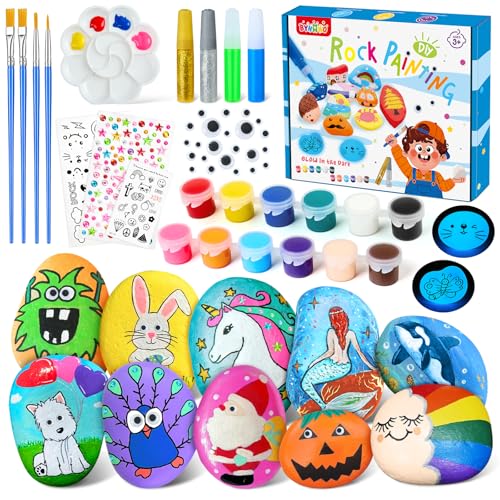 Générique Kit de Peinture sur Pierre pour - Brillant dans le Noir Kit de Peinture sur Pierre pour Enfant | Set Artisanat De Sur, Cadeau De Fête Pour Fils Fille Famille Adolescents