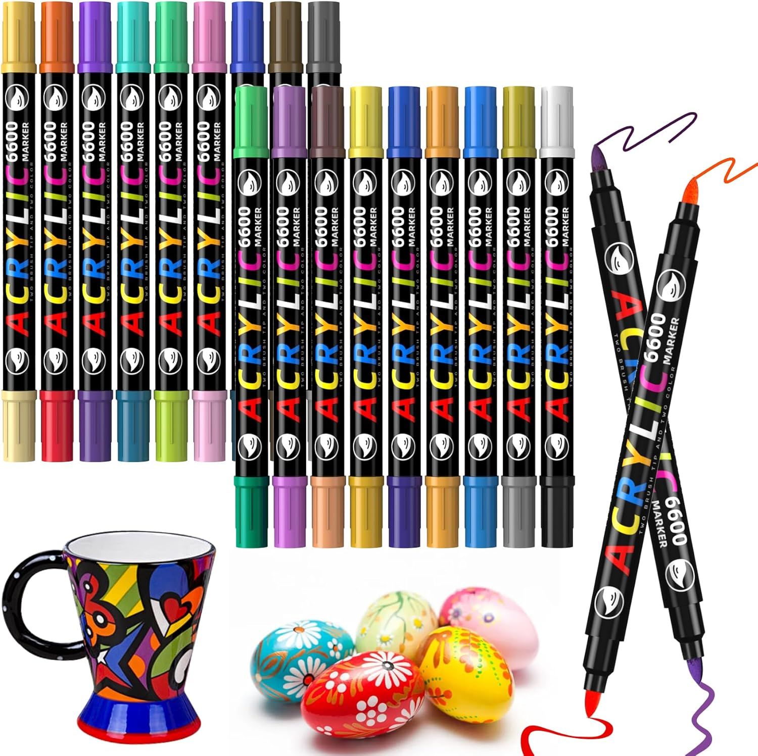 JEXNOVASHOP-Marqueur Peinture Acrylique, 24 Couleurs Pinceau Double Pointe Peinture Acryliques Stylos Marqueur Peinture Permanent Art Peinture Set pour Pierre, Bois (36 Couleurs 18 Pièces)