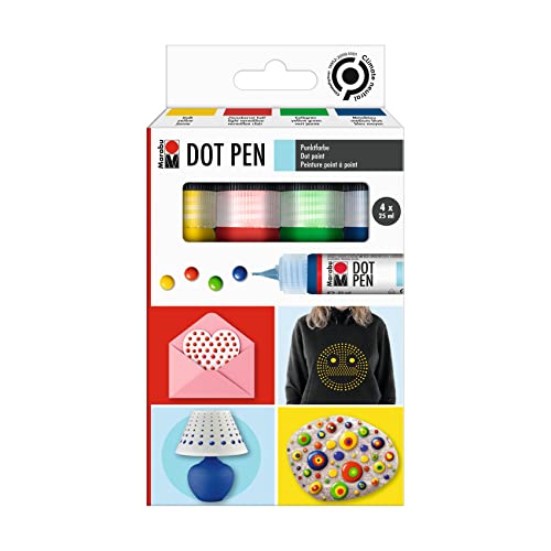 Marabu 1801000000083 - Dot Pen Set 4 x 25 ML, Peinture à Points à Base d'eau, sèche en Mat et en Relief, pour de Nombreuses Surfaces, Papier, Textiles, Pierre, etc