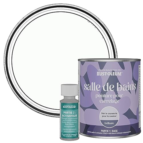 Rust-Oleum Peinture Blanche Résistante à l'eau pour Carrelage de Salle de Bain, Finition Brillante - Pierre de Lune 750ml
