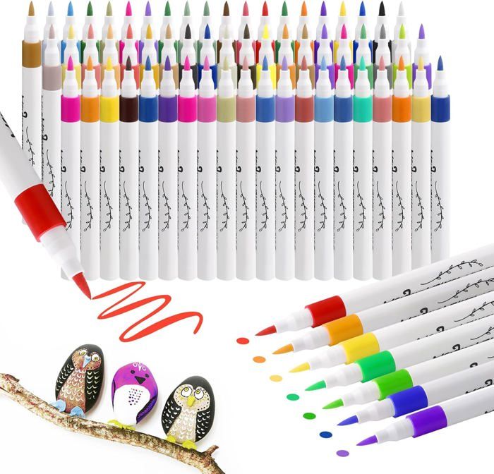 Tooli Art Lot de 63 stylos de peinture acrylique pour pierre stylos acryliques imperméables marqueurs colorés à base deau