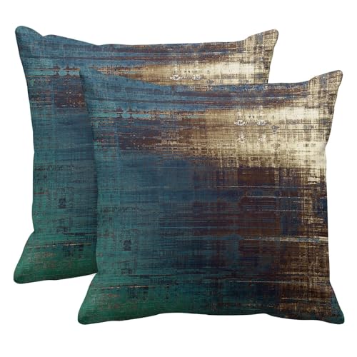 Emvency XHF0311033-SD2-25 Lot de 2 Housses de Coussin abstraites Vintage Bleu Sarcelle, Blanc et Bleu, Peinture Rouille désordonnée, taies d'oreiller décoratives pour décoration d'intérieur, taies