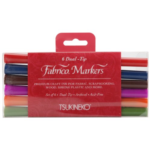 Tsukineko VersaCraft Fabrico Marker Standard - Lot de 6 Feutres Double Pointe Permanents à Eau - pour Papier, Textile, Bois et Terre Cuite - Marqueur pour Coloriage Mystère, Papeterie et Dessin