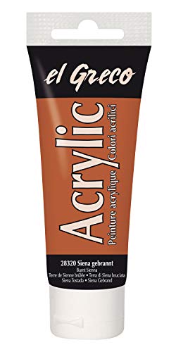 Kreul 28320 - El Greco Acrylic, tube de 75 ml en terre de sienne brûlée, peinture acrylique brillante hautement pigmentée, peut être peinte avec du beurre, pour une peinture sans pâte