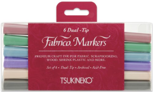 Tsukineko VersaCraft Fabrico Marker Pastel - Lot de 6 Feutres Double Pointe Permanents à Eau - pour Papier, Textile, Bois et Terre Cuite - Marqueur pour Coloriage Mystère, Papeterie et Dessin