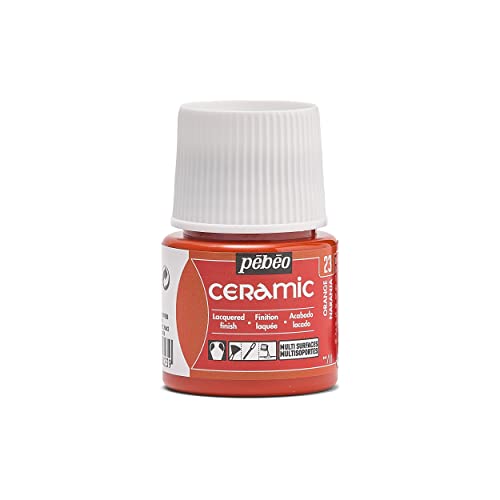 Pébéo - Ceramic - Couleur Opaque pour Terre Cuite, Céramique et Faïence - Effet Brillant - Finition Laquée - Flacon 45 ml, Orange
