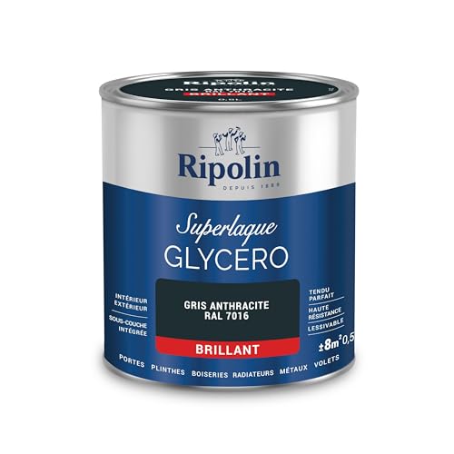 RIPOLIN - Peinture Laque Glycéro Intérieure/Extérieure - Boiseries et Structures Métalliques - Résistance Accrue - Durabilité Remarquable - Gris Anthracite Ral 7016 - Brillant - 0,5L