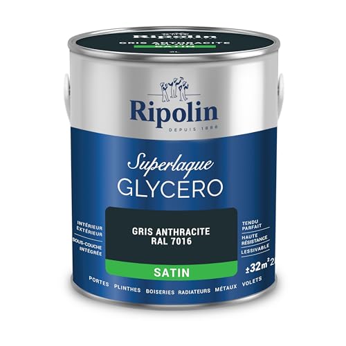 RIPOLIN - Peinture Laque Glycéro Intérieure/Extérieure - Boiseries et Structures Métalliques - Résistance Accrue - Durabilité Remarquable - Gris Anthracite Ral 7016 - Satin - 2L
