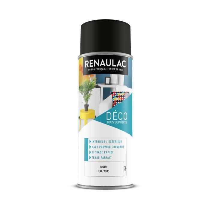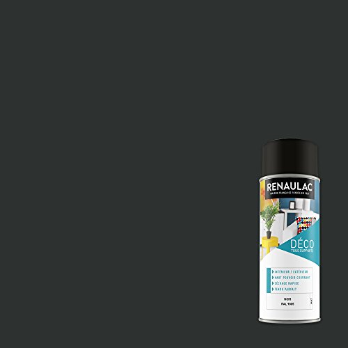 Renaulac Peinture Aérosol Déco multi-supports - Noir (Noir Mat) - 400 ml (Ref: C-REAERDECM-0001-0L4)