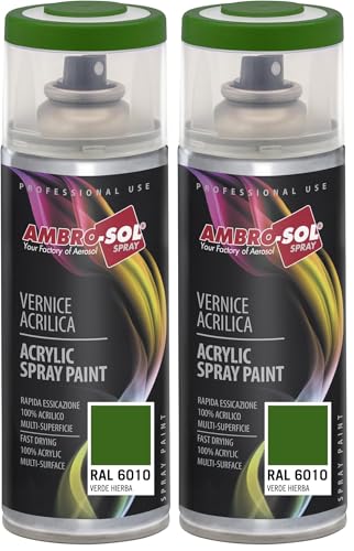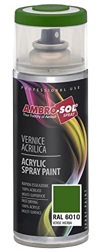 Ambro-Sol V4006010 Vernis peinture Acrylique Multi-Usage, Peinture Brillante pour Intérieur et Extérieur, Adapté a Tous Type de Matériau, Aérosol En Fer-Blanc Recyclable de 400 ml, Vert Gazon