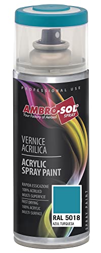 Ambro-Sol V4005018 Vernis peinture Acrylique Multi-Usage, Peinture Brillante pour Intérieur et Extérieur, Adapté a Tous Type de Matériau, Aérosol En Fer-Blanc Recyclable de 400 ml, Bleu Turquoise