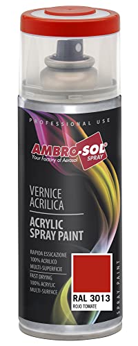 Ambro-Sol V4003013 Vernis peinture Acrylique Multi-Usage, Peinture Brillante pour Intérieur et Extérieur, Adapté a Tous Type de Matériau, Aérosol En Fer-Blanc Recyclable de 400 ml, Rouge Tomate