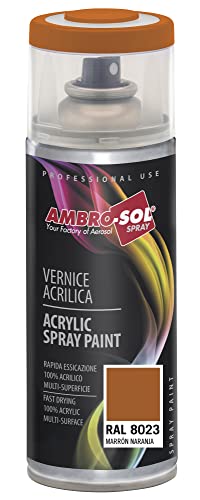 Ambro-Sol V4008023 Vernis peinture Acrylique Multi-Usage, Peinture Brillante pour Intérieur et Extérieur, Adapté a Tous Type de Matériau, Aérosol En Fer-Blanc Recyclable de 400 ml, Marron Orange