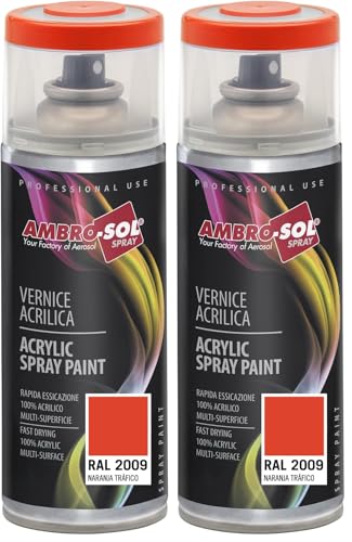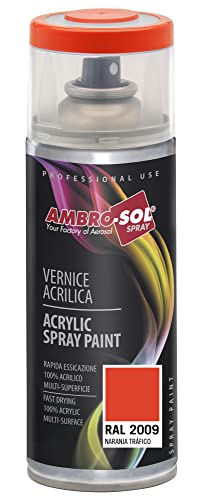 Ambro-Sol V4002009 Vernis peinture Acrylique Multi-Usage, Peinture Brillante pour Intérieur et Extérieur, Adapté a Tous Type de Matériau, Aérosol En Fer-Blanc Recyclable de 400 ml, Orange Trafic