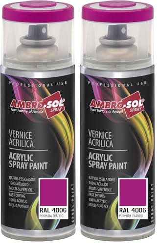 Ambro-Sol V4004006 Vernis peinture Acrylique Multi-Usage, Brillante pour Intérieur et Extérieur, Adapté a Tous Type de Matériau, Aérosol En Fer-Blanc Recyclable de 400 ml, Violette (Lot de 2)