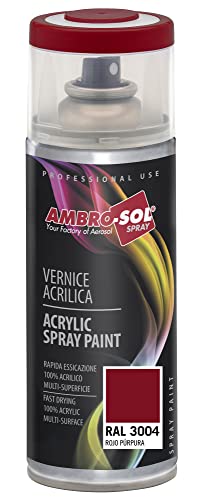 Ambro-Sol V4003004 Vernis peinture Acrylique Multi-Usage, Peinture Brillante pour Intérieur et Extérieur, Adapté a Tous Type de Matériau, Aérosol En Fer-Blanc Recyclable de 400 ml, Rouge Pourpre