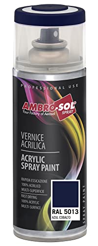 Ambro-Sol V4005013 Vernis peinture Acrylique Multi-Usage, Peinture Brillante pour Intérieur et Extérieur, Adapté a Tous Type de Matériau, Aérosol En Fer-Blanc Recyclable de 400 ml, Bleu Cobalt