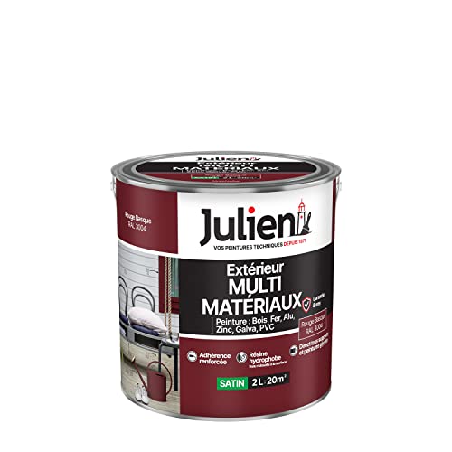 Julien Peinture Multi-Matériaux Satin en phase Aqueuse - Bois, Fer, Alu, PVC, Zinc, Acier galvanisé, brut ou peint - Rouge Basque 2 L