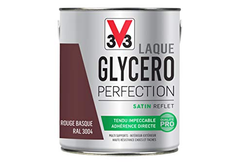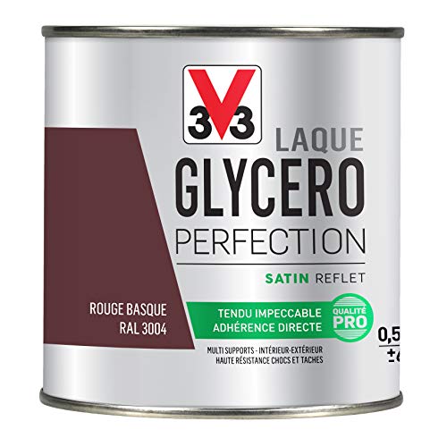 V33 Peinture multi-supports monocouche Laque Glycéro satin, Rouge Basque, 0,5 L