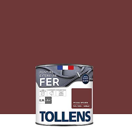 Tollens - Peinture extérieure fer 2 en 1 - Ultra Résistante - Protection antirouille - Laque Riche en Résine - Sans Sous-Couche - Entretien Facile - Satin - Rouge Basque - 0,5L = 8m2