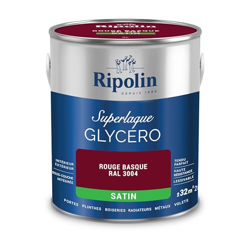 RIPOLIN - Peinture Laque Glycéro Intérieure/Extérieure - Boiseries et Structures Métalliques - Résistance Accrue - Durabilité Remarquable - Rouge Basque Ral 3004 - Satin - 2L