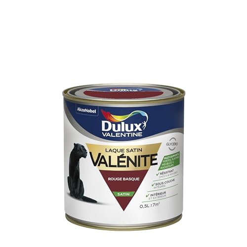 Dulux Valentine Peinture Laque Valénite Glycéro multisupport intérieur-extérieur – Grande résistance pour boiseries et ferronneries - aspect Satin Rouge Basque 0,5 L - 5296640