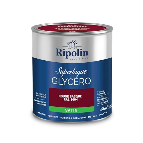 RIPOLIN - Peinture Laque Glycéro Intérieure/Extérieure - Boiseries et Structures Métalliques - Résistance Accrue - Durabilité Remarquable - Rouge Basque Ral 3004 - Satin - 0,5L