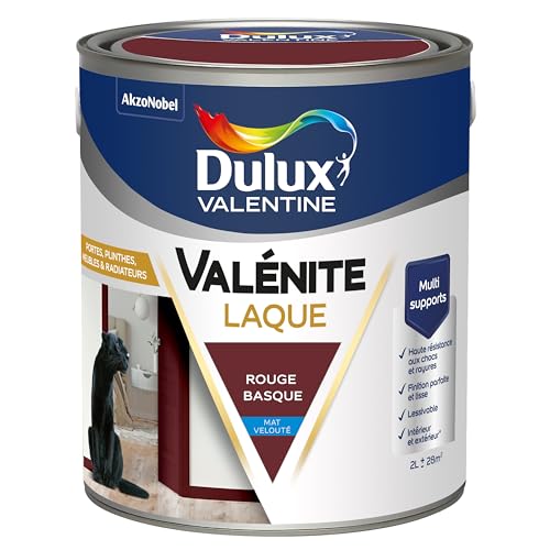Dulux Valentine Peinture Laque Valénite Intérieur et Extérieur Multi-supports - Finition parfaite et lisse, Formule Haute Résistance - Mat Rouge Basque 2 L