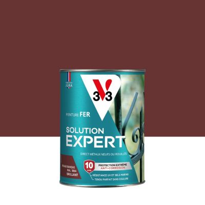 Peinture fer extérieur rouge basque RAL 3004 brillant V33 Solution Expert 250 ml
