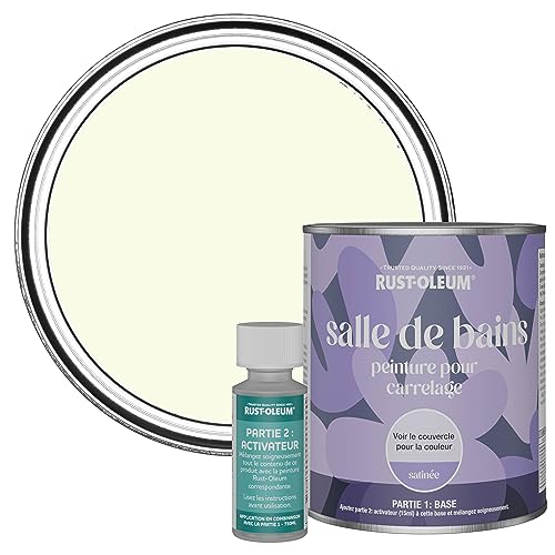 Rust-Oleum Peinture Blanche Résistante à l'eau pour Carrelage de Salle de Bain, Finition Satinée - Mousse de Lait 750ml