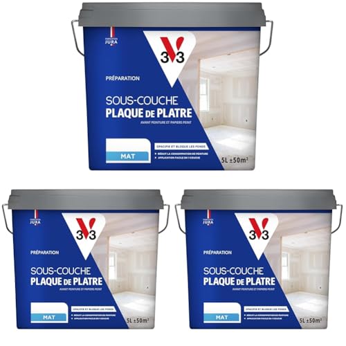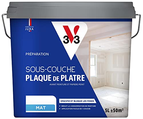 V33 SOUS-COUCHE PLAQUE DE PLATRE, Préparation avant peinture et papier peint, Blanc mat, 5L (Lot de 3)