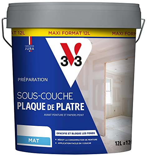 V33 SOUS-COUCHE PLAQUE DE PLATRE, Préparation avant peinture et papier peint, Blanc mat, 12L