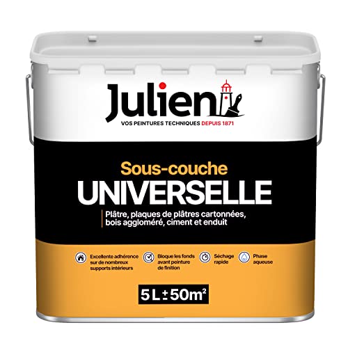 Julien Peinture Sous-Couche - Universelle - Murs et Plafonds, Plaques de Plâtre, Ciment, Béton, Enduits Lissés, Bois et Dérivés - Blanc Mat 5L