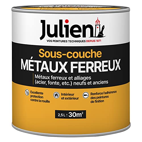 Julien Peinture Sous-couche pour métaux ferreux - Imperméable à l'air et humidité, résistant à la corrosion - Blanc Mat 2,5L