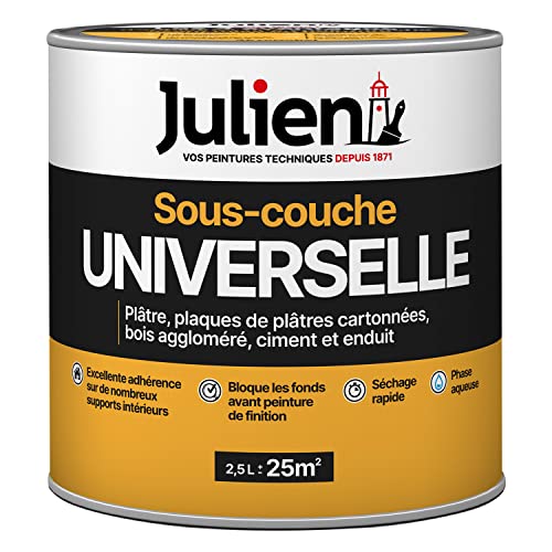 Julien Peinture Sous-Couche - Universelle - Murs et Plafonds, Plaques de Plâtre, Ciment, Béton, Enduits Lissés, Bois et Dérivés - Blanc Mat 2,5L