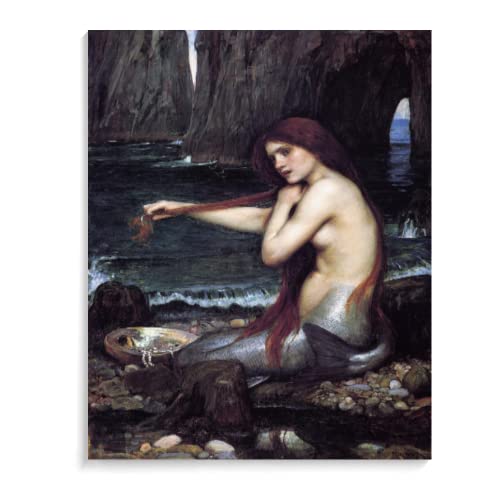 Peinture Par Numero Sur Toile Adulte Paysage - A Mermaid - John William Waterhouse 40X50Cm Peindre Par Numéro Célèbres Tableaux Avec 3 Brosses,Acrylique,A9