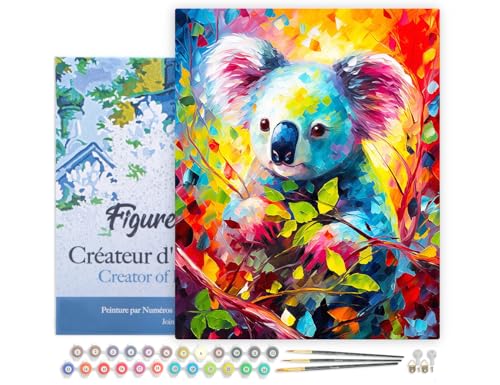 Figured'Art Peinture par Numéro Adulte avec Cadre Koala Coloré Abstrait - Activité Manuelle Kit de Loisir Créatif DIY Numéro d'Art Complet Animaux - 40x50cm toile tendue sur châssis
