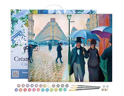 Figured'Art Peinture par Numéro Adulte avec Cadre Rue de Paris, temps de pluie - G. Caillebotte - Activité Manuelle Kit de Loisir Créatif DIY Numéro d'Art Complet - 40x50cm toile tendue sur châssis
