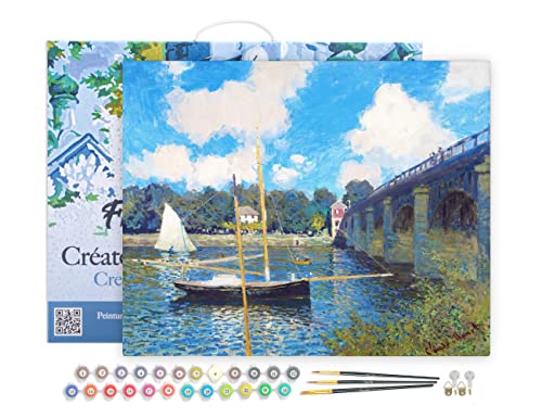 Figured'Art Peinture par Numéro Adulte avec Cadre Le Pont d'Argenteuil - Monet - Activité Manuelle Kit de Loisir Créatif DIY Numéro d'Art Complet - 40x50cm toile tendue sur châssis